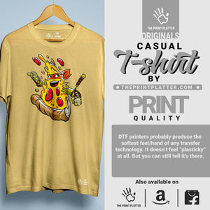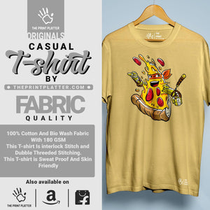 Get ready to impress with our Pizza Ninja Cotton Bio Wash T-shirt! Made from 100% high-quality cotton, this classic fit t-shirt offers both comfort and durability. With a crew neckline and half sleeves, it's perfect for any occasion. Proudly crafted in India, our eye-catching t-shirt features a unique printed graphic. From casual outings to parties, be a trendsetter with THE PRINT PLATTER.