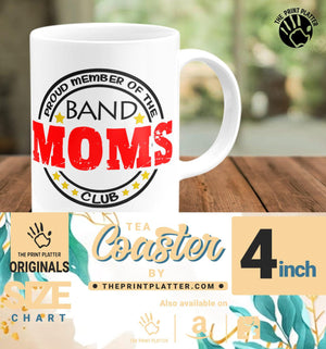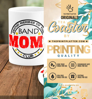 Proud Member Of The Band Moms Club White Cermic Coffee Mug With Tea Coster 330 ml, Microwave & Dishwasher Safe| TM-R191