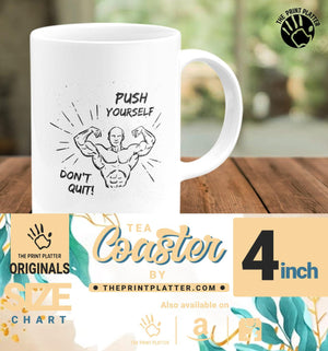 Push Yourself Don't Quit! White Cermic Coffee Mug With Tea Coster 330 ml, Microwave & Dishwasher Safe| TM-R37