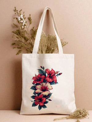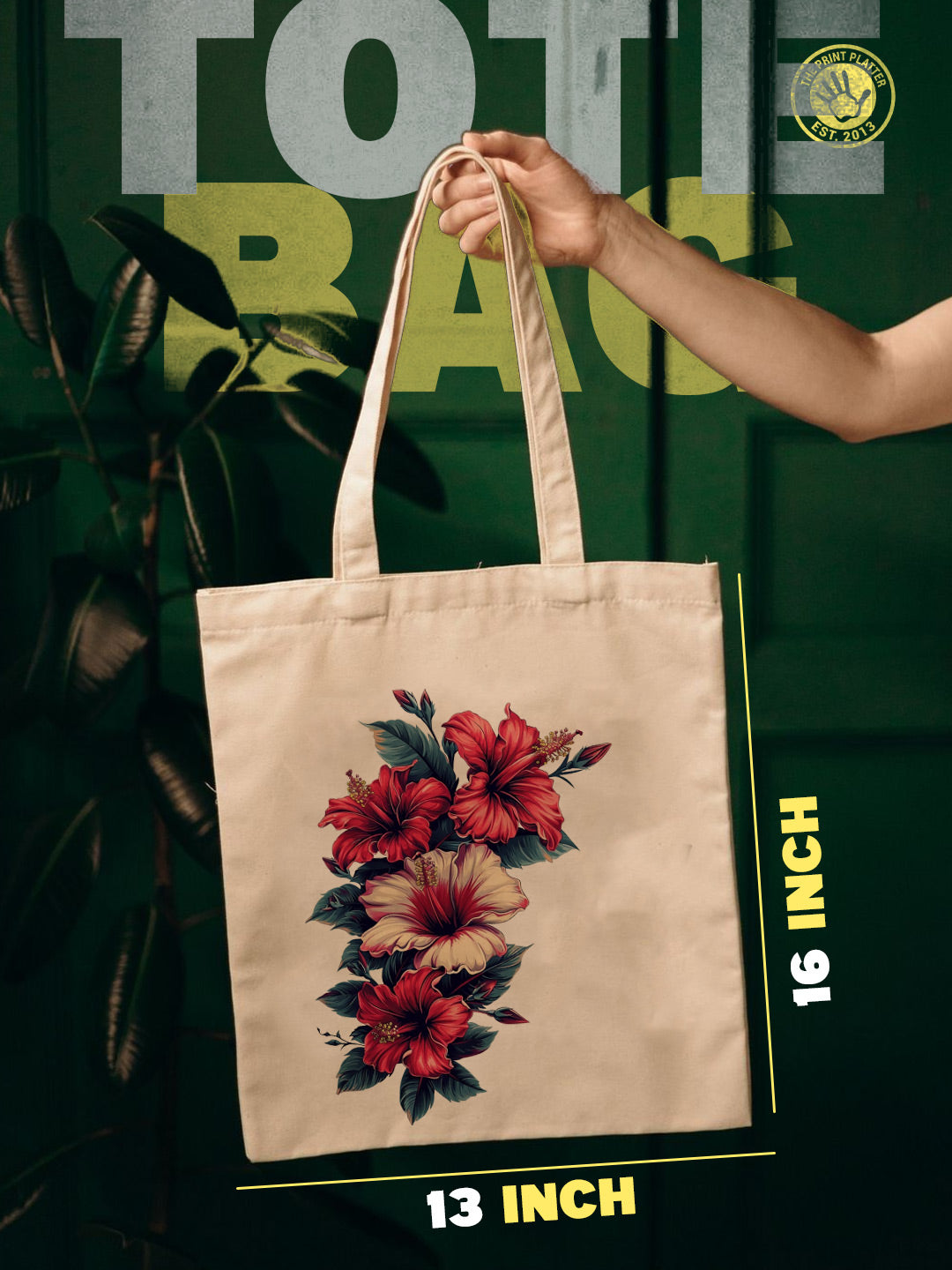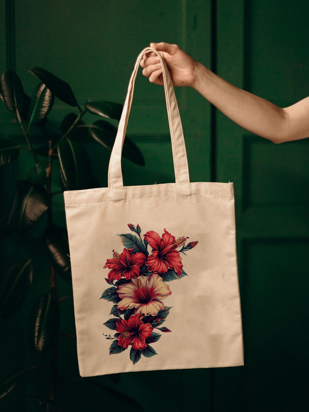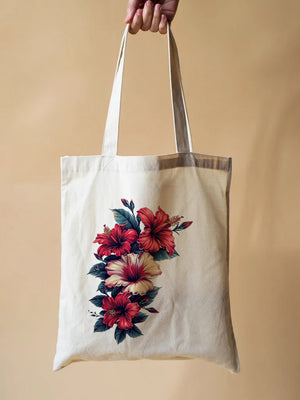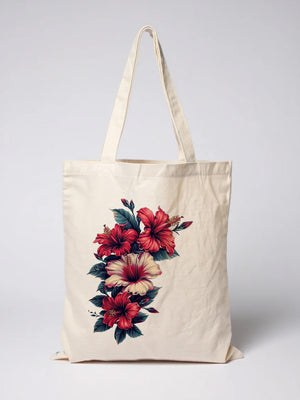 hibiscus flower Tote Bag – Nature illustration Reusable Jute/Canvas Tote Bag