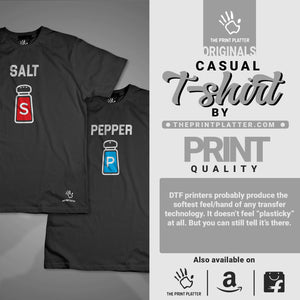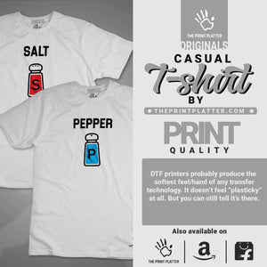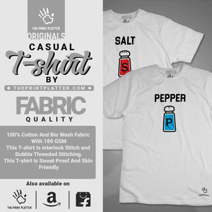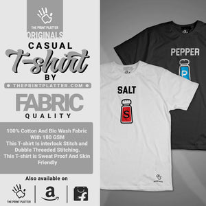 Add some flavor to your everyday look with this stylish and minimalist Salt & Pepper Printed T-Shirt. Symbolizing perfect contrast and timeless balance, this design is ideal for those who like to keep it classy yet casual. Whether you're bold like pepper or cool like salt โ this tee suits every mood!