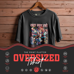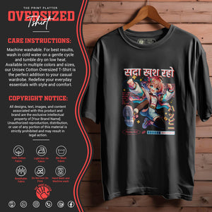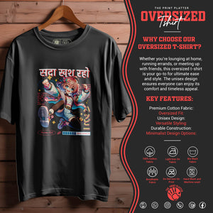 😊 Stay-Happy Oversized T-Shirt for Men & Women | Positive Vibes | Bio-Washed Cotton | Casual Wear