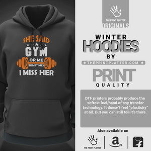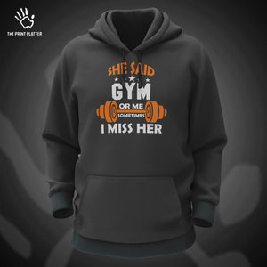 She Said Gym Or Me Sometimes I Miss Her Cotton Bio Wash 330gsm Sweatshirt with Hood for Winter | H-R26