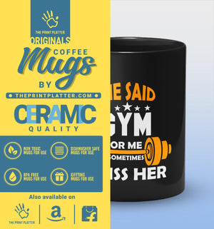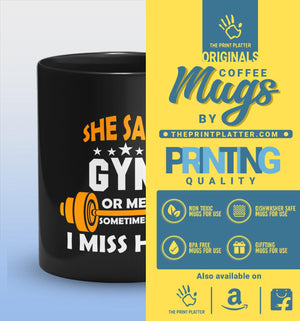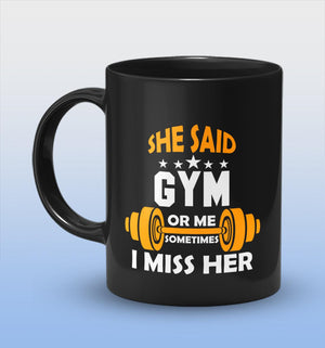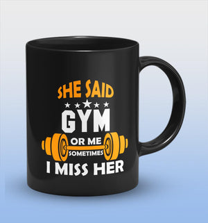 She Said Gym Or Me Sometimes I Miss Her Full Black Cermic Coffee Mug 330 ml, Microwave & Dishwasher Safe| CM-R26
