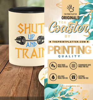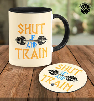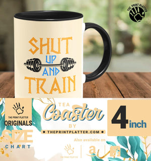 Shut Up And Train Inside Black Cermic Coffee Mug With Tea Coster 330 ml, Microwave & Dishwasher Safe| TM-R29