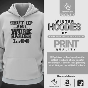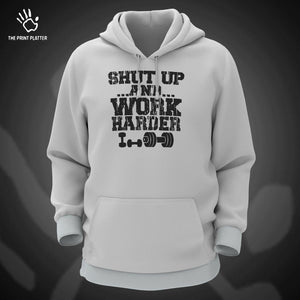 Shut Up And Work Harder Cotton Bio Wash 330gsm Sweatshirt with Hood for Winter | H-R28