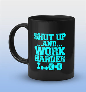 Shut Up And Work Harder Full Black Cermic Coffee Mug 330 ml, Microwave & Dishwasher Safe| CM-R28