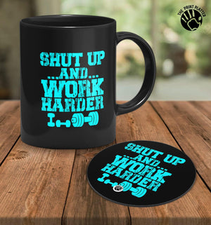 Be the envy of your coworkers with the Shut Up And Work Harder Full Black Ceramic Coffee Mug. Not only does it hold 330ml of your favorite drink, but it's also environmentally friendly and non-toxic. Plus, the included coaster makes it perfect for your desk. Dishwasher and microwave safe for your convenience.