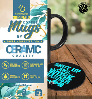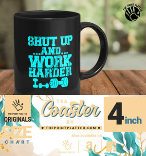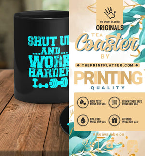 Shut Up And Work Harder Full Black Cermic Coffee Mug With Tea Coster 330 ml, Microwave & Dishwasher Safe| TM-R28