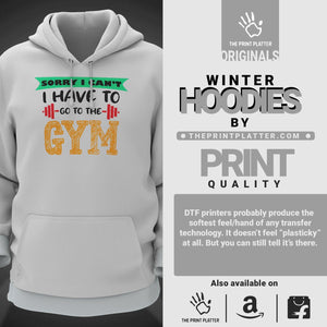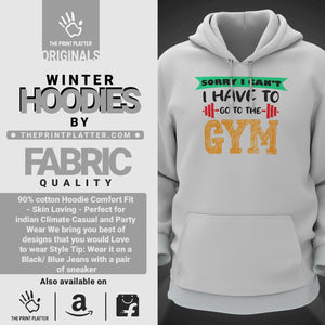 Sorry I Can't I Have To Go To The Gym Cotton Bio Wash 330gsm Sweatshirt with Hood for Winter | H-R24