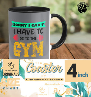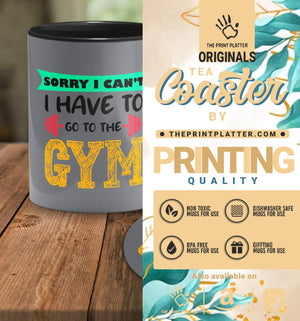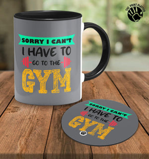 Sorry I Can't I Have To Go To The Gym Inside Black Cermic Coffee Mug With Tea Coster 330 ml, Microwave & Dishwasher Safe| TM-R24