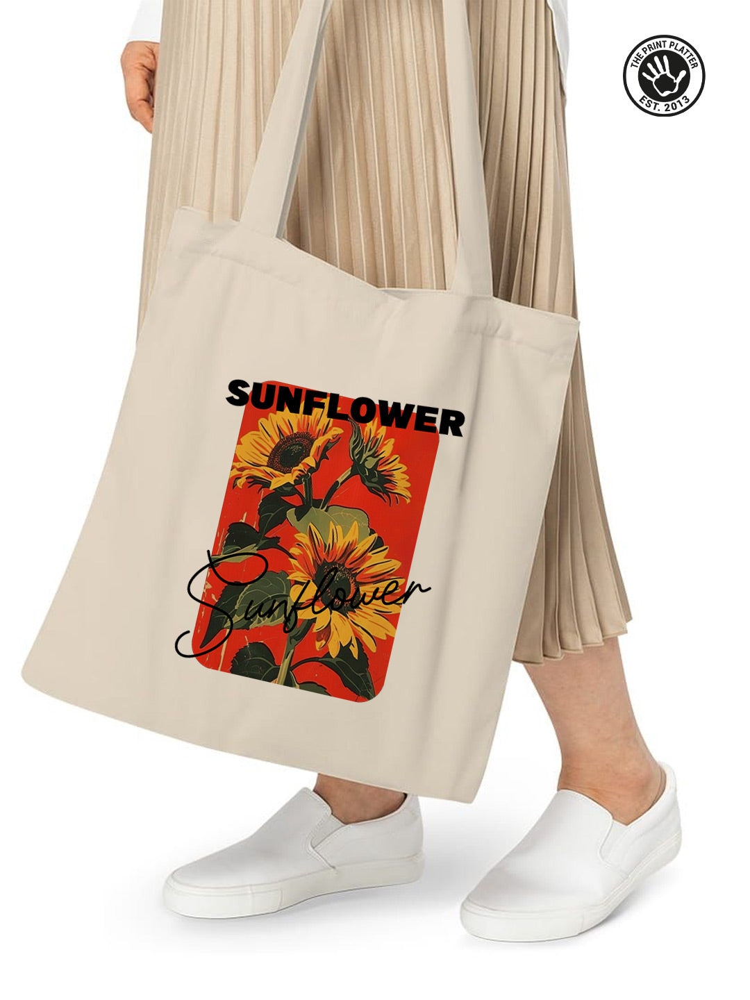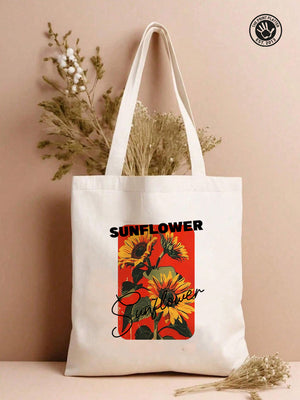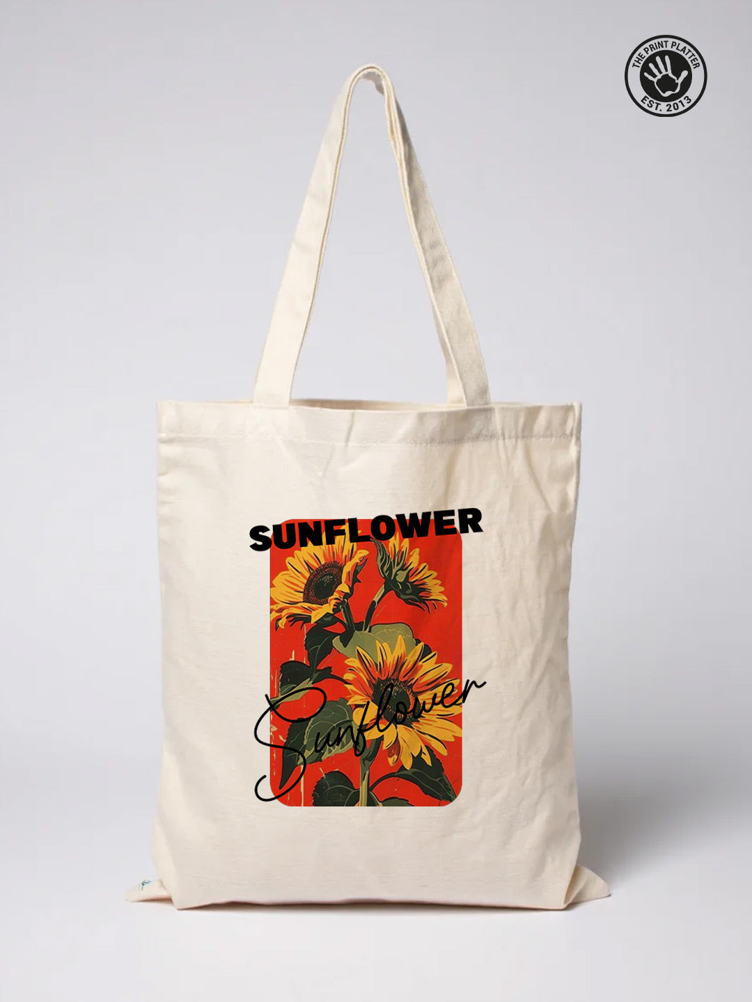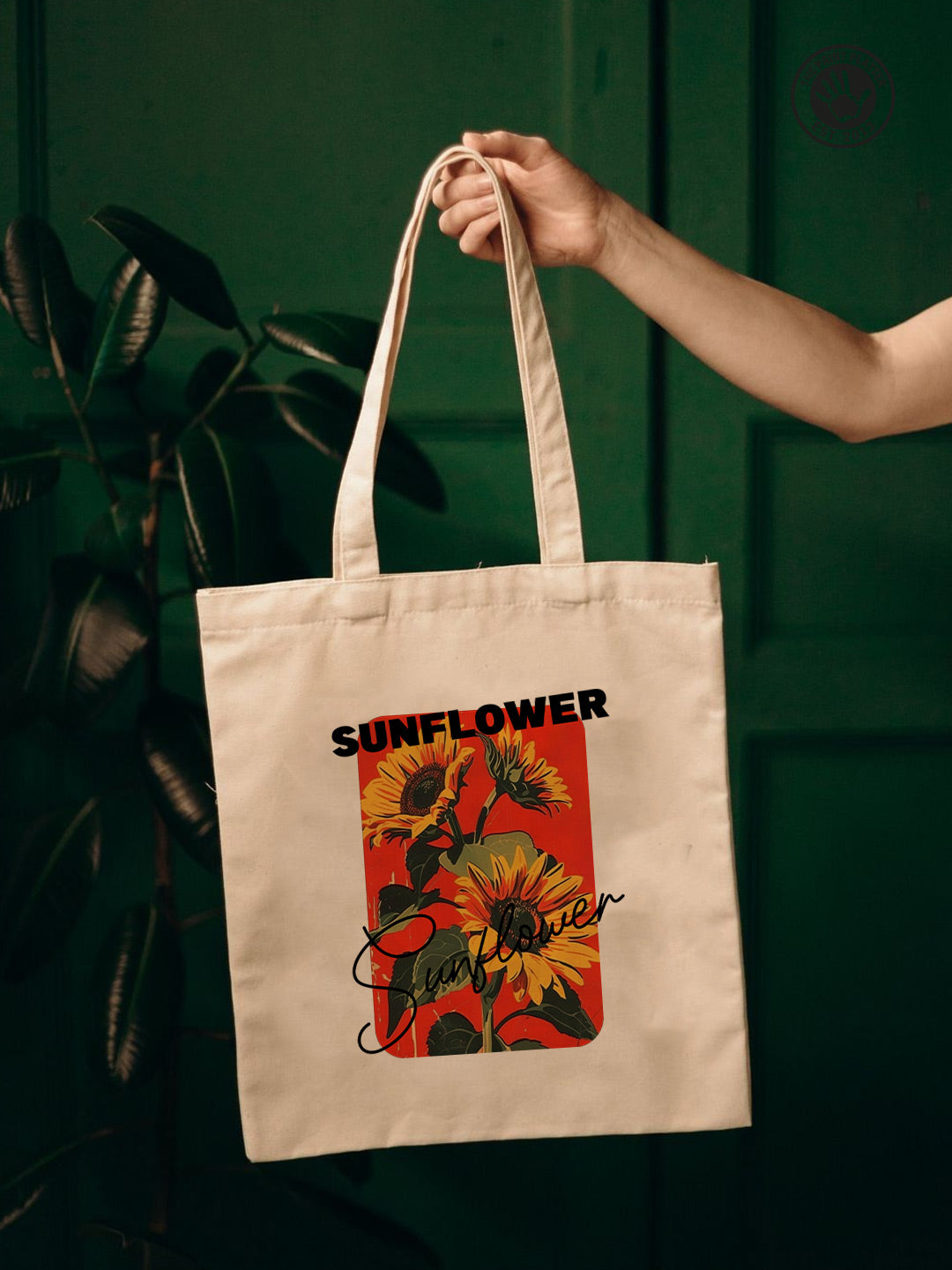 Sun flower Tote Bag – Nature illustration Reusable Jute/Canvas Tote Bag