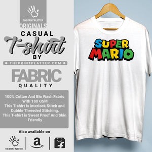Get ready to make a statement with our Super Mario Cotton Bio Wash T-shirt! Made from 100% high-quality cotton, this durable and comfortable t-shirt is perfect for any occasion. With a classic fit, crew neckline, and unique printed graphics, this t-shirt is a must-have addition to your wardrobe. Proudly crafted in India from THE PRINT PLATTER for all your stylish and quirky t-shirt needs.