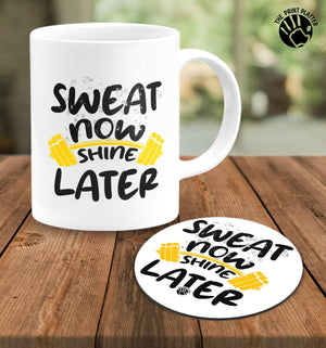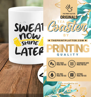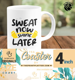 Sweat Now Shine Later White Cermic Coffee Mug With Tea Coster 330 ml, Microwave & Dishwasher Safe| TM-R23