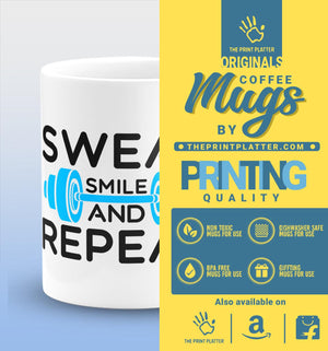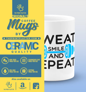 Sweat Smile And Repeat White Cermic Coffee Mug 330 ml, Microwave & Dishwasher Safe| CM-R22