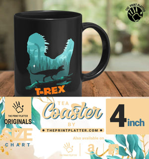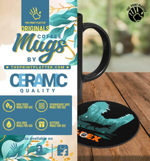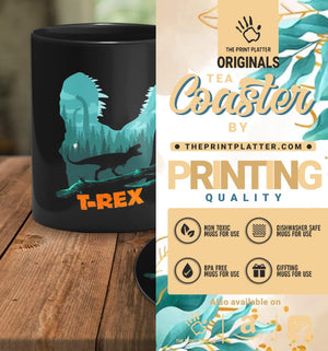 T-Rex Jurassic Park Full Black cermic Coffee Mug With Tea Coster 330 ml, Microwave & Dishwasher Safe| TM-R55