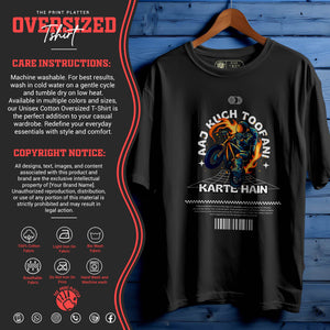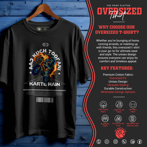 Unleash the storm within! The “Aaj Kuch Toofani” oversized T-shirt is perfect for the rebels, dreamers, and mischief-makers. Whether you're out creating chaos or just vibing high, this t-shirt matches your fearless energy.