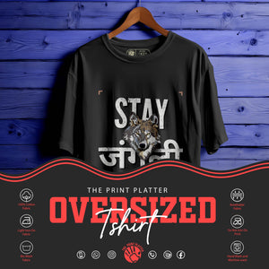 Stay Jungli Oversized T-Shirt for Men & Women | Unisex Bio-Wash Cotton Tee