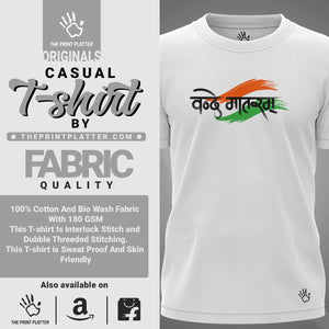 Show your patriotic spirit this Republic Day with our Vande Mataram Unisex T-shirt, a perfect blend of comfort, style, and national pride. Made from 100% premium cotton, this T-shirt is soft, breathable, and ideal for all-day wear. Whether you're attending a flag hoisting ceremony, school event, or simply want to express your love for India, this tee makes a bold and meaningful statement.