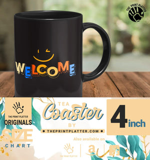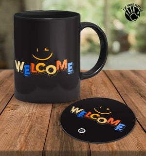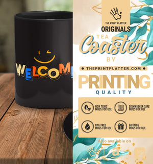 Welcome full Black Cermic Coffee Mug With Tea Coster 330 ml, Microwave & Dishwasher Safe| TM-R244