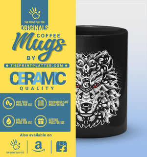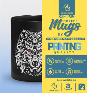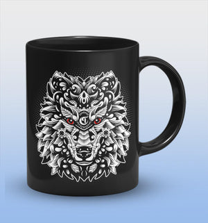 Wolf Full Black Cermic Coffee Mug 330 ml, Microwave & Dishwasher Safe| CM-R184