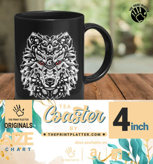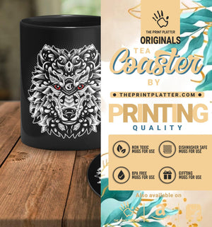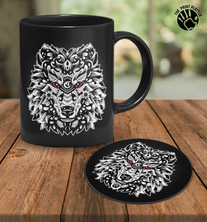 Wolf Head Full Black Cermic Coffee Mug With Tea Coster 330 ml, Microwave & Dishwasher Safe| TM-R184