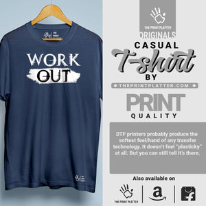 Show off your playful side with our Work Out Cotton Bio Wash T-shirt! Made with 100% cotton and a classic fit, this t-shirt is not only comfy but also long-lasting. Whether it's for everyday wear or a special event, the crewneck and half sleeves add a touch of style. Add a splash of quirk to your wardrobe with our one-of-a-kind printed graphics - proudly made in India by THE PRINT PLATTER. Grab yours now for a fun and fashionable addition to your closet!