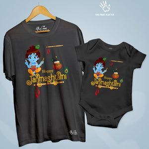 Happy Janmashtami Unisex Cotton Bio Wash 180gsm T-shirt + Half Sleeve Romper Combo | Combo-Janmashtami-8